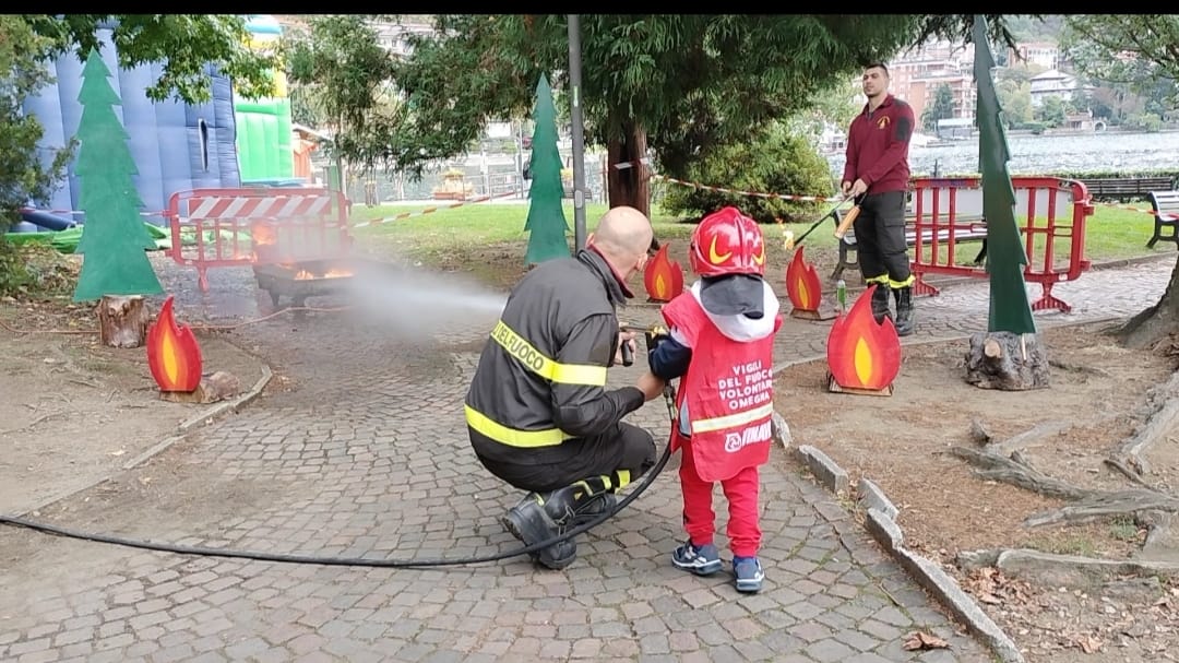 Sono stati circa 400 i bambini che grazie ad un avvincente e divertente un percorso allestito in piazza Martiri, zona giardini, hanno sperimentato diverse prove e hanno ricevuto il famoso attestato di pompiere per un giorno e la bella medaglia di Grisù.
