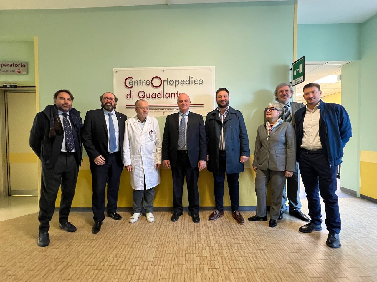 OMEGNA - 4-11-2024 -- Ancora una volta nel VCO. L'assessore regionale alla Sanità, Federico Riboldi dopo le puntate nel Verbano prima e in Ossola la settimana scorsa, questa mattina ha visitato il Cusio. Accompagnato dal sottosegretario regionale Alberto Preioni, con la direttrice generale dell'ASL Chiara Serpieri, il sindaco Daniele Berio ed i vertici della struttura di Omegna, Riboldi ha visitato il Centro Ortopedico di Quadrante, successivamente ha tagliato il nastro del micronido da dieci posti dedicato gratuitamente ai figli dei dipendenti Asl.