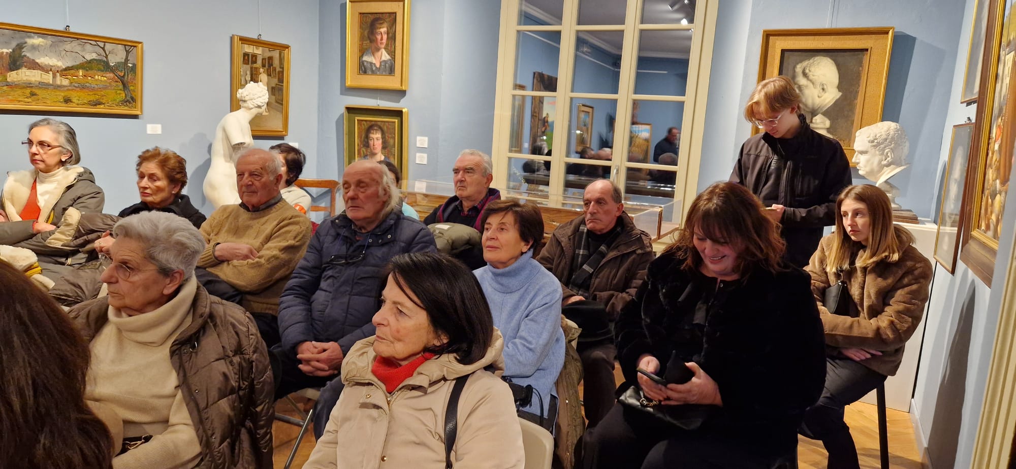 SANTA MARIA MAGGIORE - 4-1-2025 -- Un successo ieri sera la presentazione della mostra “Allievi Maestri Benefattori in dialogo con il contemporaneo”, un omaggio ai tre pittori “di casa” alla Scuola vigezzina, con tre artisti in residenza che dialogano con le opere della Pinacoteca Rossetti Valentini a Santa Maria Maggiore. La Fondazione Rossetti Valentini ha elaborato una mostra inedita: propone infatti un dialogo tra le opere di Alfredo Belcastro, Severino Ferraris e Alessandro Giozza e la contemporaneità di Giovanni Frangi, Antonella Gerbi e Jill Mathis. Curata da Lorella Giudici, la mostra sarà aperta fino al 1° giugno e l’hanno presentata l’architetto e storico Gim Bonzani, il critico d’arte Giuseppe Possa, Anna Gnuva, sorella di Anselmo Gnuva che fu presidente della Scuola di Belle Arti Rossetti Valentini, moderati dall’attuale presidente Bruno Testori. Il maestro Roberto Bassa ha accompagnato al pianoforte la presentazione con un concerto ispirato dalle opere degli artisti ora in mostra. Bruno Testori, presidente della Scuola di Belle Arti Rossetti Valentini di Santa Maria Maggiore, spiega: «In realtà la mostra era stata aperta il 6 dicembre ma abbiamo posticipato la presentazione degli artisti in esposizione perché non era possibile effettuarla nel momento dei mercatini di Natale. Esponiamo le collezioni di Belcastro e Ferraris che ci sono state donate dagli stessi, con un omaggio ad Alessandro Giozza, anche lui maestro e amico della scuola, e li mettiamo a confronto con artisti contemporanei residenti. Questi sono Giovanni Frangi, che presenta un’opera pittorica messa in confronto con le opere di Alfredo Belcastro, poi una fotografia di Jill Mathis a confronto con le opere di Severino Ferraris e la scultura di Antonella Gerbi, in dialogo con le opere di Alessandro Giozza. La presentazione di oggi vuole essere un ricordo legato allo spirito che il fondatore Giovanni Maria Rossetti Valentini è riuscito a tramandare e trasmettere ai suoi allievi e discendenti che hanno proseguito il percorso della scuola portandola fino ai giorni nostri e riuscendo a mantenerla attiva. È l’unica rimasta in tutto l’arco alpino». Per tutta la primavera 2025 la mostra sarà aperta sabato e domenica dalle ore 10 alle 12 e dalle 15 alle 17.