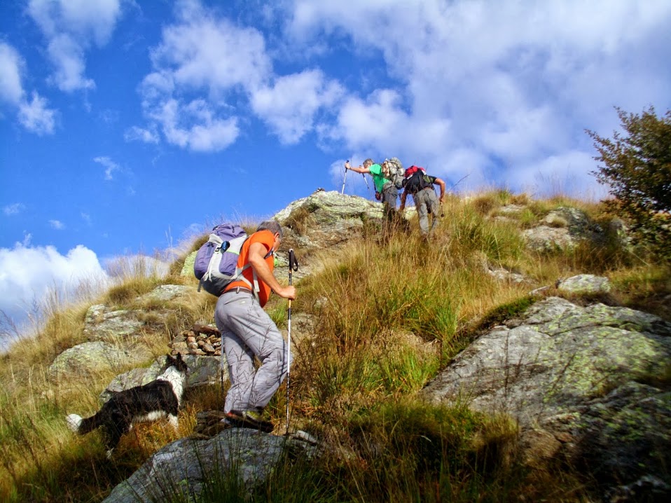 Su questo terreno improvvisiamo una gara di tuffi, come non si vedeva dai tempi di Cagnotto e Di Biasi: manca soltanto l'acqua. All'alpe ritroviamo il sentiero e, seguendolo con attenzione, pur distratti da qualche splendido porcino, raggiungiamo, in due ore e mezza dalla vetta, Pogallo, 830, ricco di baite e di storia, anche tragica. Nella baita di due amici, che ci hanno preparato un sontuoso risotto, ritroviamo il presidente.