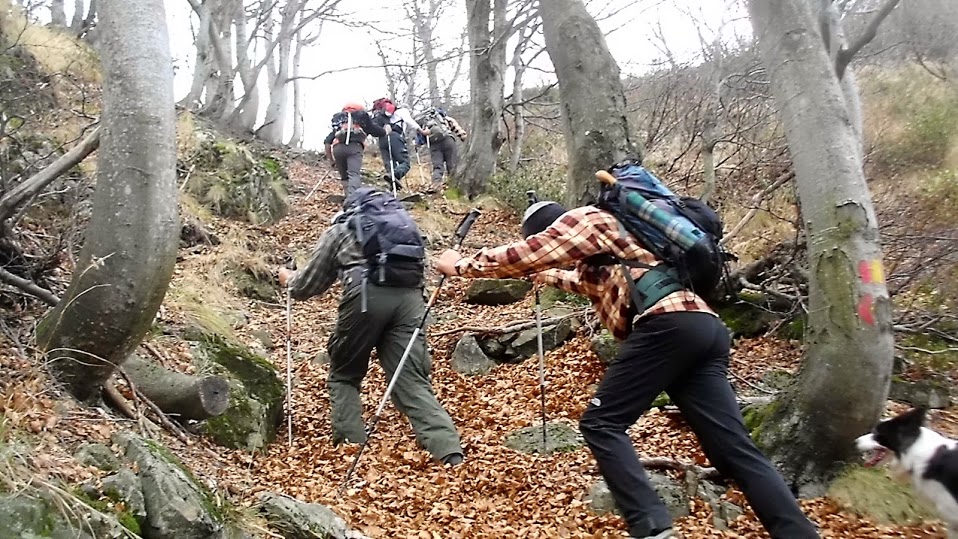 Pranziamo al caldo del camino, che la giornata rende particolarmente gradito, e ripristiniamo la scorta di legna. Sembra inutile dirlo, ma non è, purtroppo, ovvio per tutti. Rimettiamo in ordine al meglio e risaliamo faticosamente, in fase di digestione, le poche decine di metri che ci separano dalla bocchetta. Da qui si scende e, quindi, massima attenzione e concentrazione. Un innocuo scivolone di un anziano procura l'immediato e semplice intervento del medico di turno, che oggi è senza colleghi.