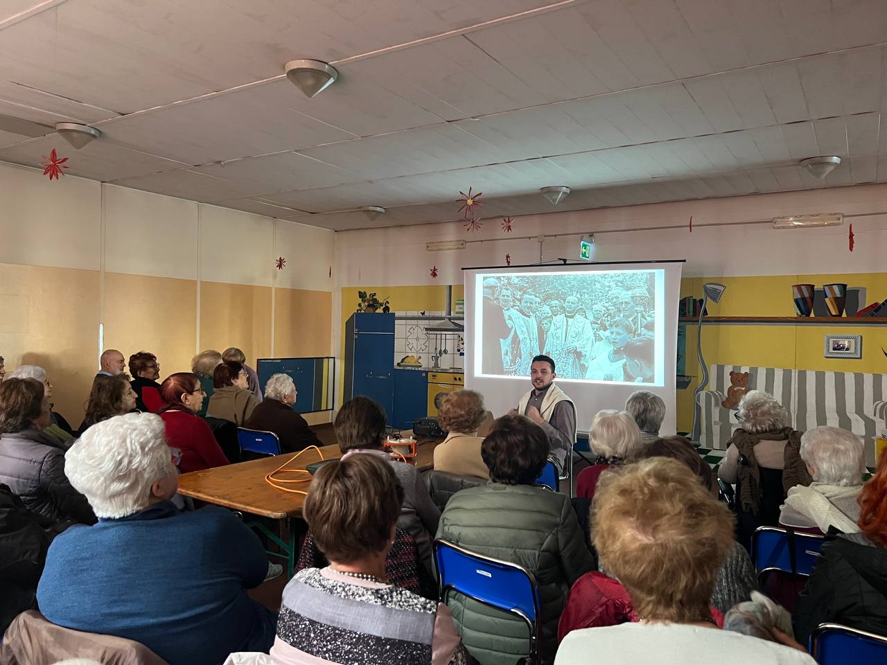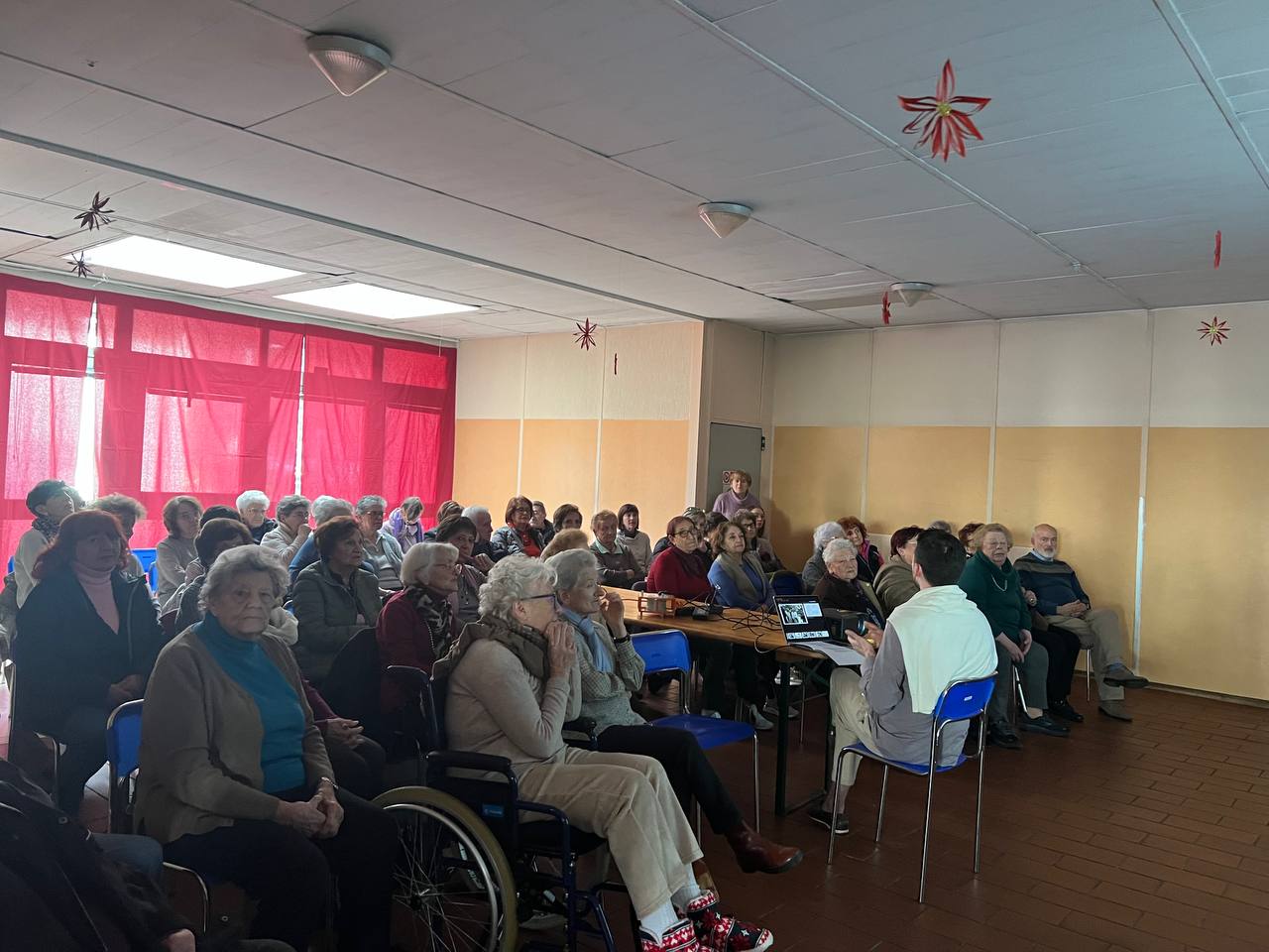 GRAVELLONA TOCE - 6-2-2025 -- Ieri, mercoledì 5 febbraio, a Gravellona Toce, Samuele Giolzetti, giovane appassionato di storia locale, ha condiviso con gli anziani del "salotto del mercoledì" i suoi studi su Villa Capra-Albertini, già presentati in occasione dell'ultima edizione dell'Ottobre Culturale Gravellonese.