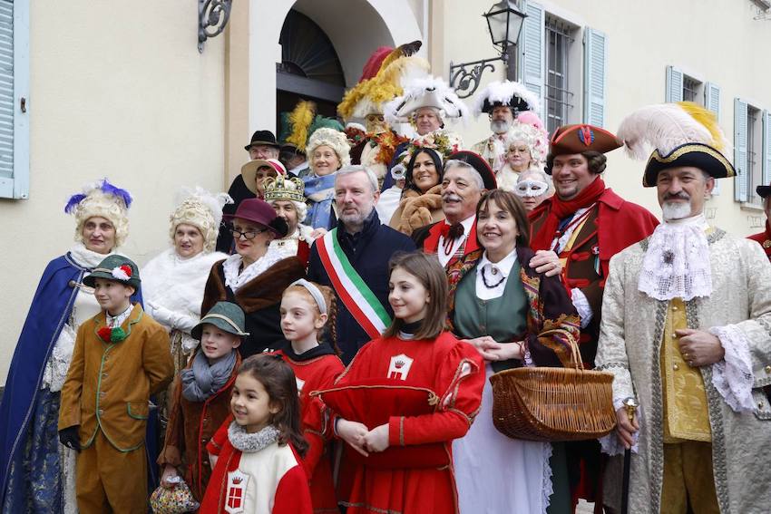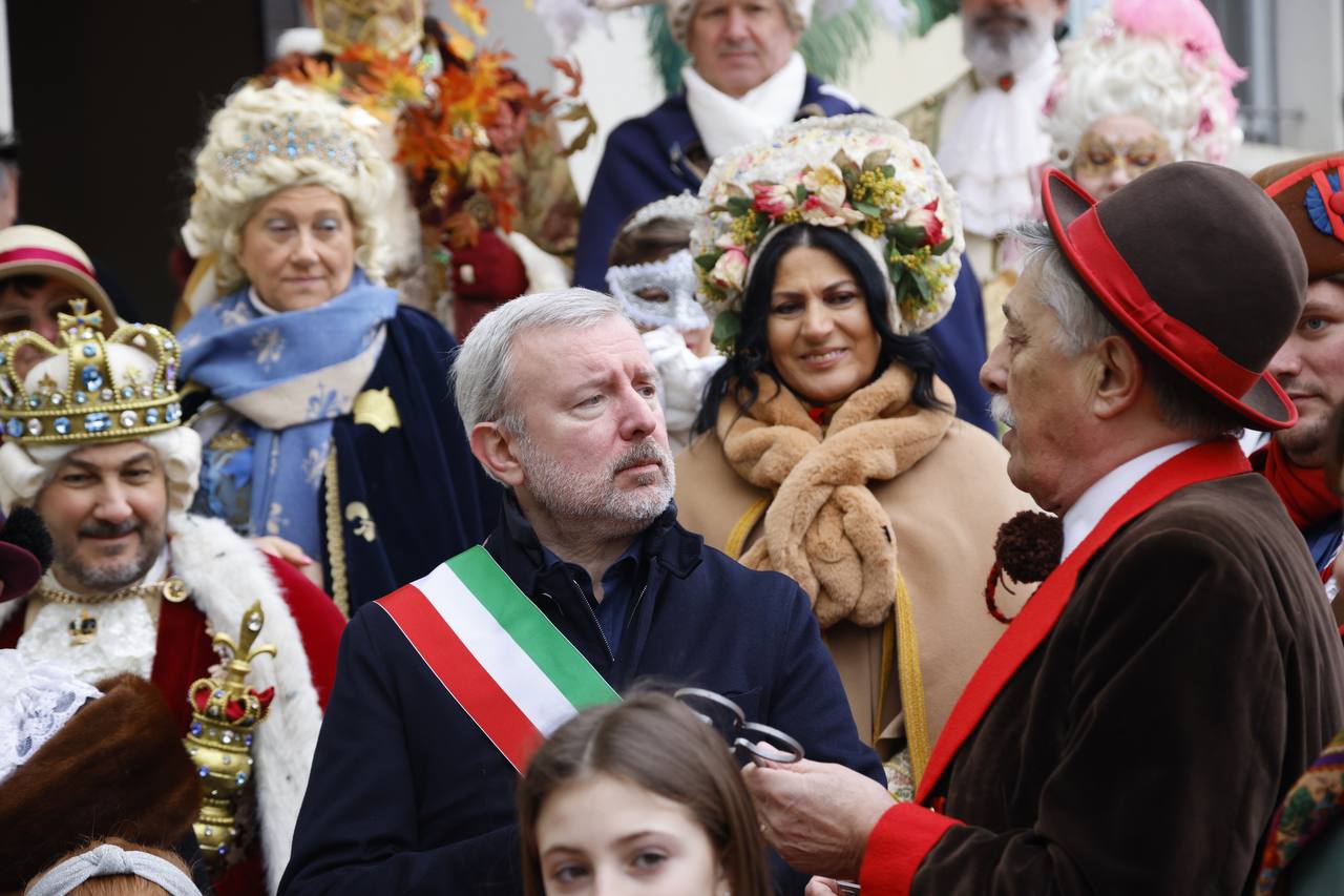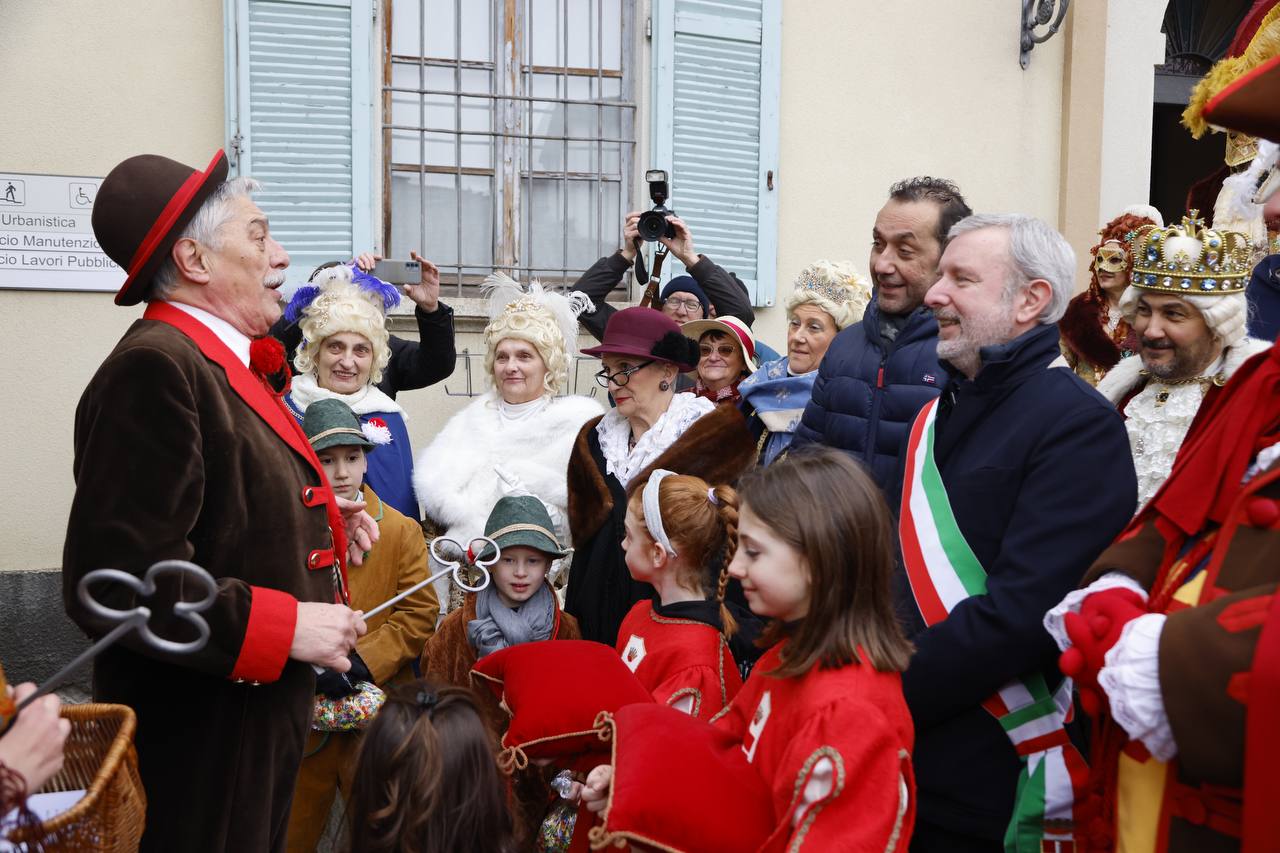 OLEGGIO - 16-02-2025 -- Si è aperta ufficialmente la 73^ edizione del Carnevale Oleggese. Domenica mattina, 16 febbraio, infatti, si è tenuta la tradizionale cerimonia di consegna delle chiavi della città da parte del sindaco Andrea Baldassini al Pirin, la maschera oleggese. A seguire lo stesso Pirin ha tenuto il discorso in forma bonariamente satirica dalla prèia dal pes.