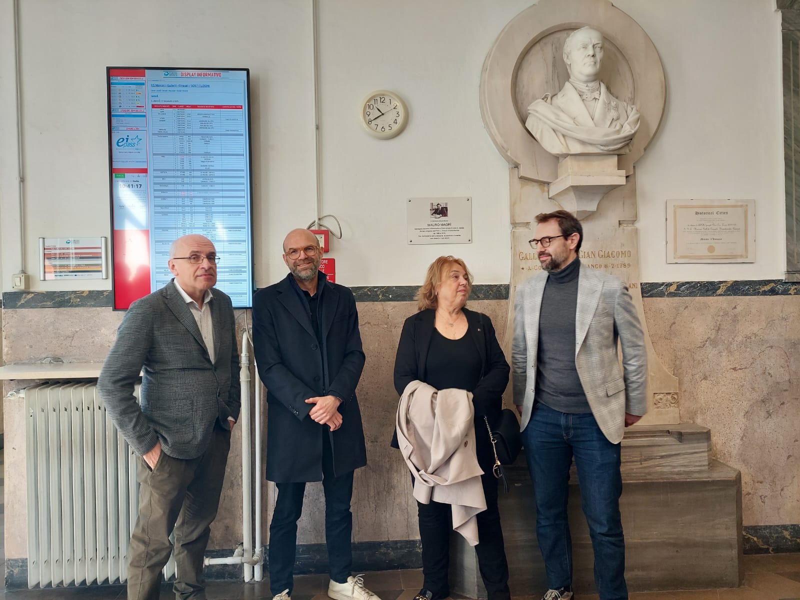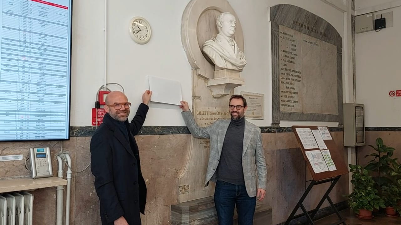 DOMODOSSOLA – 20-3-2025 -- Il decennale della morte di Mauro Magrì, insegnante di Matematica e Fisica al liceo “Spezia” di Domodossola, poi Dirigente scolastico all’I.T.C.G.“Einaudi” dal 1996 al 2012, è stato commemorato nei giorni scorsi con una cerimonia semplice, che ha coinvolto diversi insegnanti e membri del personale amministrativo dell’istituto tecnico commerciale oggi accorpato al “Galletti” eal “Marconi”. Nell’Aula Magna di via Matilde Ceretti 23, con l’introduzione dell’attuale Dirigente scolastico Gaudenzio D’Andrea, racconti e aneddoti hanno riportato alla memoria la figura di Magrì alla presenza della moglie, Marinella Finazzi e dei figli, Alessandro e Massimo, che hanno scoperto la targa a lui dedicata nell’atrio dell’antico edificio scolastico, per decenni sede dell’Istituto Professionale Galletti. Non poteva mancare qualche cenno alla grande passionedi Mauro Magrì, il cinema e al ruolo di animatore del cineforum domese, nel quale si è impegnato per diversi anni. La cerimonia si è conclusa con un rinfresco nel locale, da poco rinnovato, della biblioteca e sala di lettura del plesso di via Ceretti.